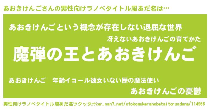 | 意味不明あだ名 | 『住所不定無職あおきけんご(47歳)』 |