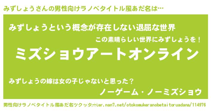 | 女子向けラノベタイトル風あだ名 | 『みずしょう姫と円卓の騎士』 |