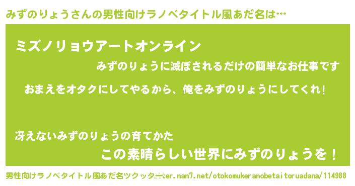 | 女子向けラノベタイトル風あだ名 | 『みずのりょう恋絵巻』 |
