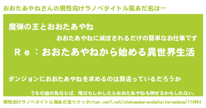 | 意味不明あだ名 | 『自称おおたあやね』 |