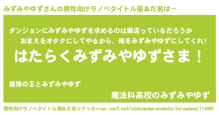 | ヒーロー風カッコイイあだ名 | 『魔戒騎士ミズ』『愛の使者みずみやゆず』 |