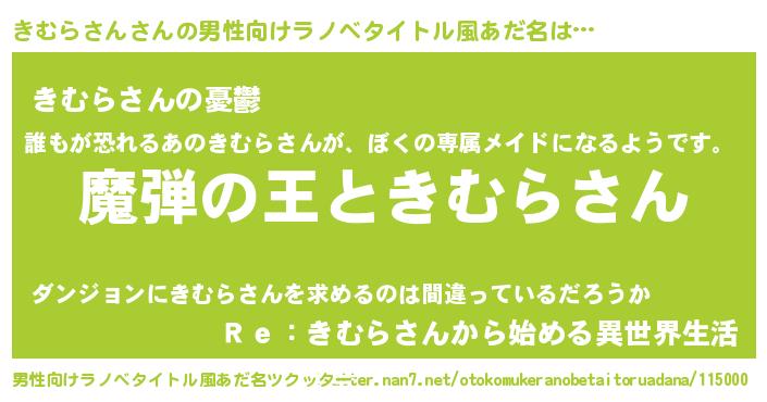 | 女子向けラノベタイトル風あだ名 | 『きむらさんが死なない童話 林檎のきむらさんの診療簿』 |