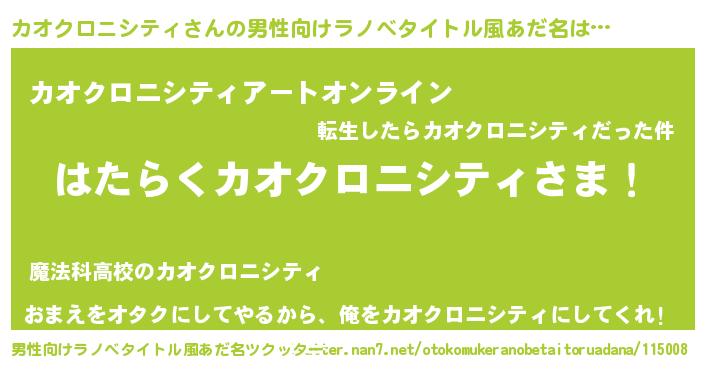 | 胡散臭い通販商品みたいなあだ名 | 『必ず成功する霊験あらたかなお札…その名も「カオクロニシティ」』 |