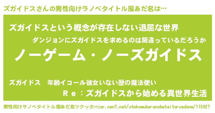 | 女子向けラノベタイトル風あだ名 | 『死神ズガイドスの再婚』 |
