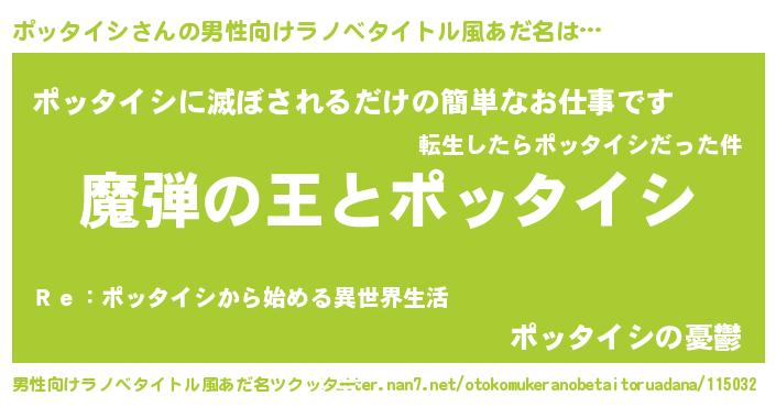 | 女子向けラノベタイトル風あだ名 | 『ポッタイシが死なない童話 林檎のポッタイシの診療簿』 |