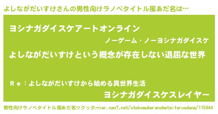 | ヒーロー風カッコイイあだ名 | 『ネオヨシナガダイスケ』『暗黒騎士ヨシ』 |