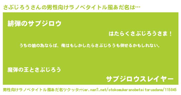 | ファンタジー風あだ名 | 『エターナルサブジロウー』 |