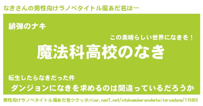 | 女子向けラノベタイトル風あだ名 | 『なきアンティーク』『なきは平凡を望む』 |