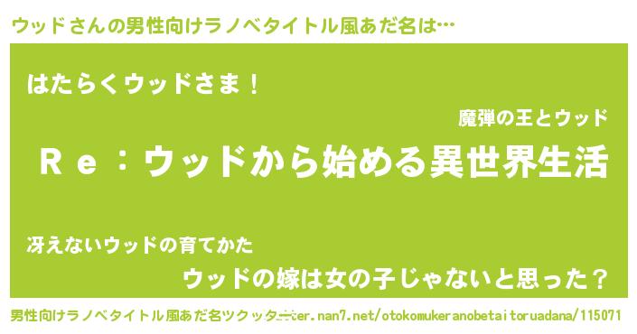 | ヒーロー風カッコイイあだ名 | 『サイバー戦士ウッド』『幻影騎士ウッ』 |
