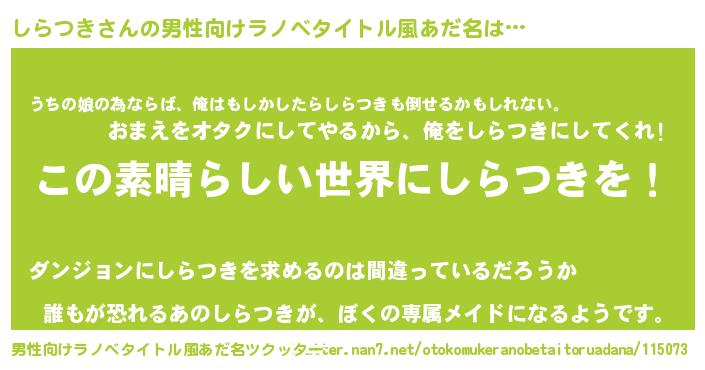 | 胡散臭い通販商品みたいなあだ名 | 『あなたにだけ特別に提供する世界で10本だけ現存している希少なブランデー…その名も「しらつき」』 |