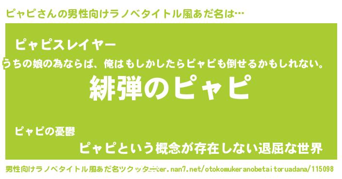 | ヒーロー風カッコイイあだ名 | 『ネオピャピ』『ウルトラピャピマン』 |