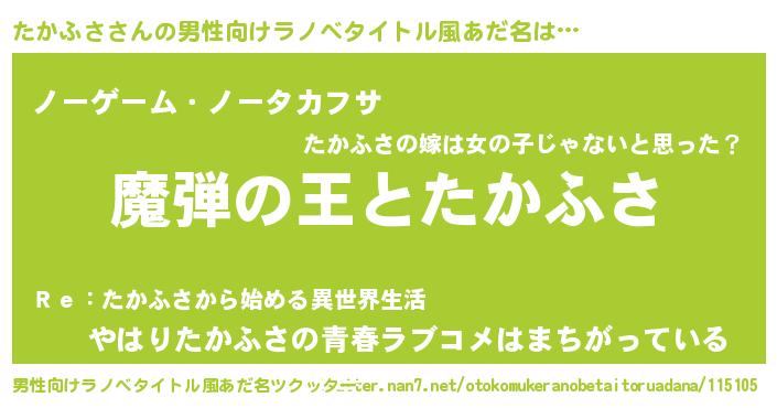 | 意味不明あだ名 | 『住所不定無職たかふさ(3歳)』 |