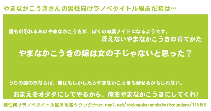 | 女子向けラノベタイトル風あだ名 | 『やまなかこうき様がみてる』 |