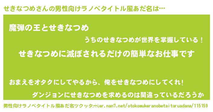 | 伝説のあだ名 | 『解き放たれた僧侶せきなつめ』 |