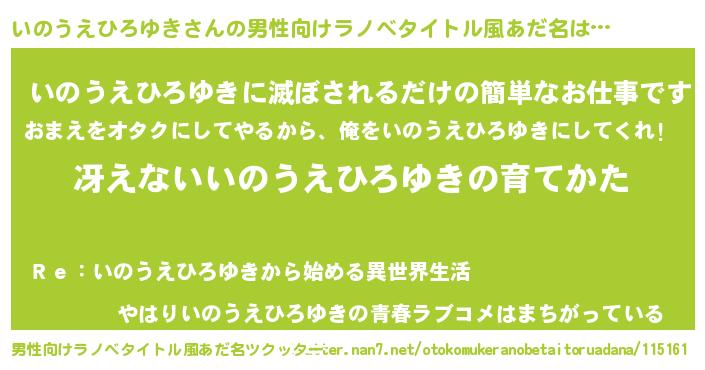 | 女子向けラノベタイトル風あだ名 | 『シンデレラいのうえひろゆき家の靴箱館』 |
