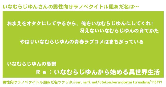 | 女子向けラノベタイトル風あだ名 | 『いなむらじゆんの雑貨屋さん』 |