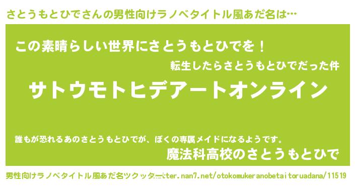 | 女子向けラノベタイトル風あだ名 | 『さとうもとひで姫と円卓の騎士』 |