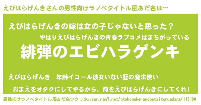| 意味不明あだ名 | 『とにかく怪しいえびはらげんき』 |