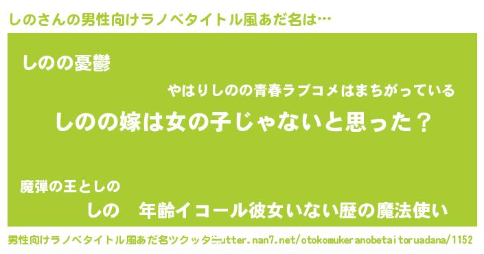 | ピコ太郎風あだ名 | 『シノ一郎』『シコ史郎』『ピシ次郎』 |