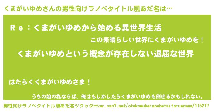 | 意味不明あだ名 | 『永久保存くまがいゆめ』 |