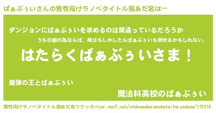 | 胡散臭い通販商品みたいなあだ名 | 『信頼と実績のペンダント…その名も「ばぁぶぅい」』 |
