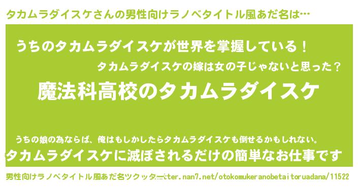 タカムラダイスケさんの男性向けラノベタイトル風あだ名をツクッター!
