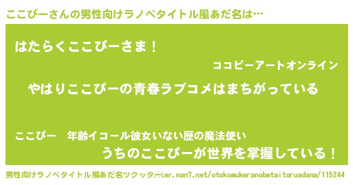 | ヒーロー風カッコイイあだ名 | 『ウルトラここぴーマン』『幻影騎士ココ』 |