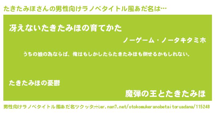 | 女子向けラノベタイトル風あだ名 | 『たきたみほ伯爵の花嫁』 |