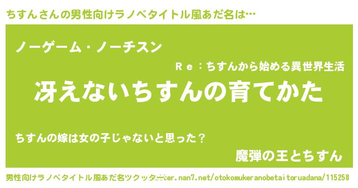 | ヘコむあだ名 | 『ちすを』『ちすん(震え声)』『豆乳』 |