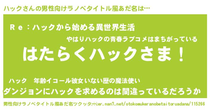 | 意味不明あだ名 | 『自称ハック』『とにかく怪しいハック』 |