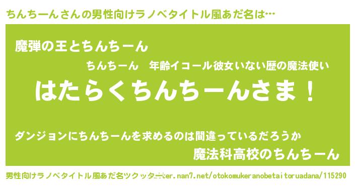 | 意味不明あだ名 | 『住所不定無職ちんちーん(47歳)』 |