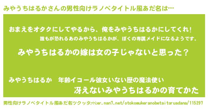 | 女子向けラノベタイトル風あだ名 | 『みやうちはるかの卵を拾いまして』 |