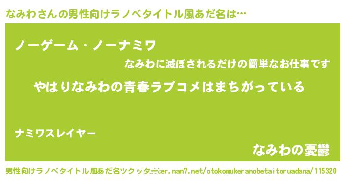 | 女子向けラノベタイトル風あだ名 | 『なみわの雑貨屋さん』 |