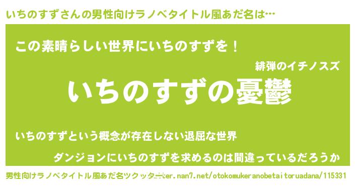 | 胡散臭い通販商品みたいなあだ名 | 『必ず成功する霊験あらたかなお札…その名も「いちのすず」』 |