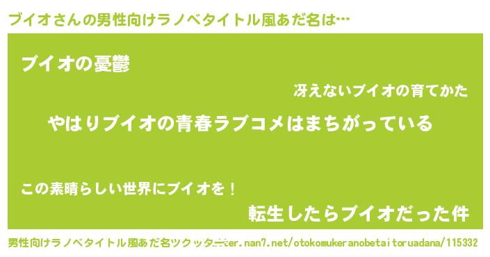 | 女子向けラノベタイトル風あだ名 | 『ブイオの雑貨屋さん』 |