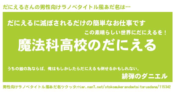 | 女子向けラノベタイトル風あだ名 | 『だにえるなんてお断りですっ。』 |