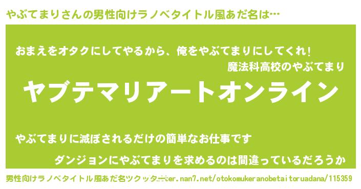 | 胡散臭い通販商品みたいなあだ名 | 『億万長者になれる霊験あらたかなお札…その名も「やぶてまり」』 |