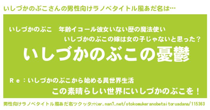 | 女子向けラノベタイトル風あだ名 | 『(仮)いしづかのぶこのやんごとなき事情』 |