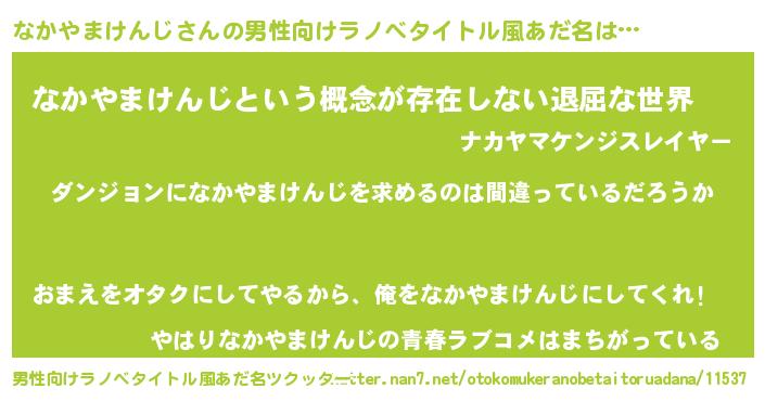 | 女子向けラノベタイトル風あだ名 | 『なかやまけんじは平凡を望む』 |