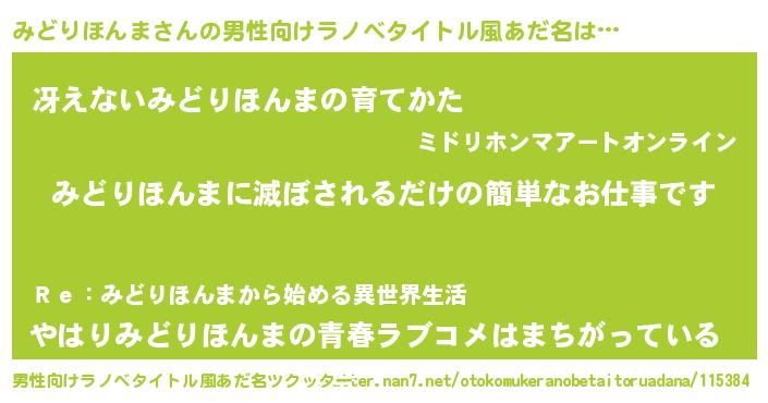 みどりほんまさんの男性向けラノベタイトル風あだ名をツクッター!