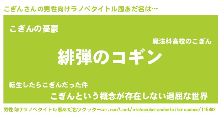| 女子向けラノベタイトル風あだ名 | 『シンデレラこぎん家の靴箱館』 |