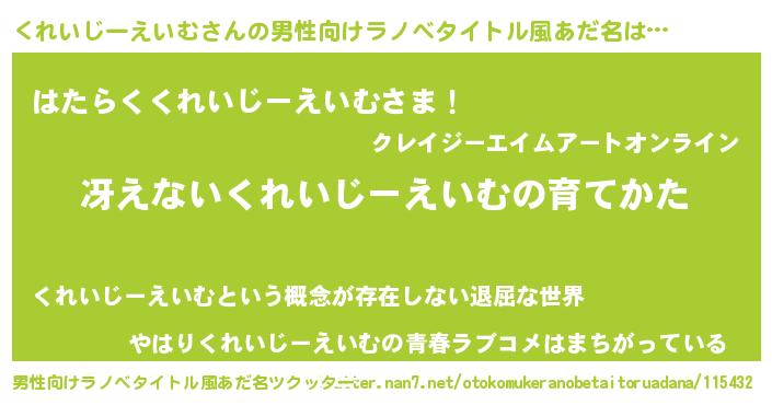| 意味不明あだ名 | 『くれいじーえいむフォーエバー』 |