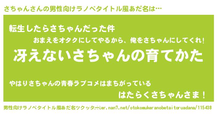 | ヒーロー風カッコイイあだ名 | 『慈愛の使者さちゃん』『仮面サチダー』 |