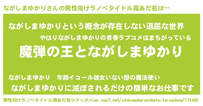 ながしまゆかりさんの男性向けラノベタイトル風あだ名をツクッター!