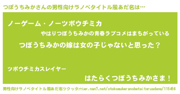 | 胡散臭い通販商品みたいなあだ名 | 『伝統あるサプリメント…その名も「つぼうちみか」』 |