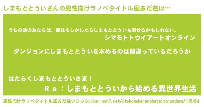 | 胡散臭い通販商品みたいなあだ名 | 『伝統あるペンダント…その名も「しまもととうい」』 |