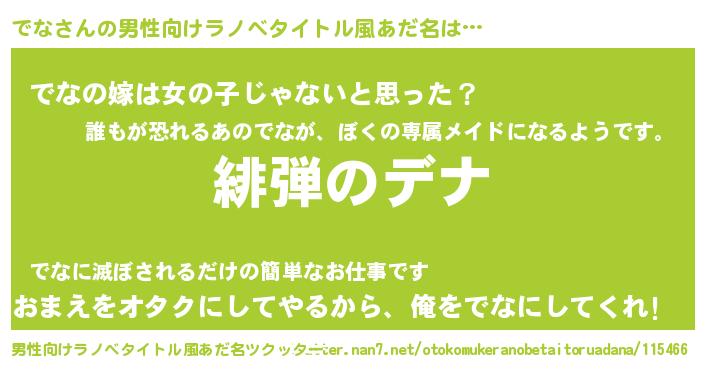 | ヒーロー風カッコイイあだ名 | 『暗黒騎士デナ』『慈愛の使者でな』 |