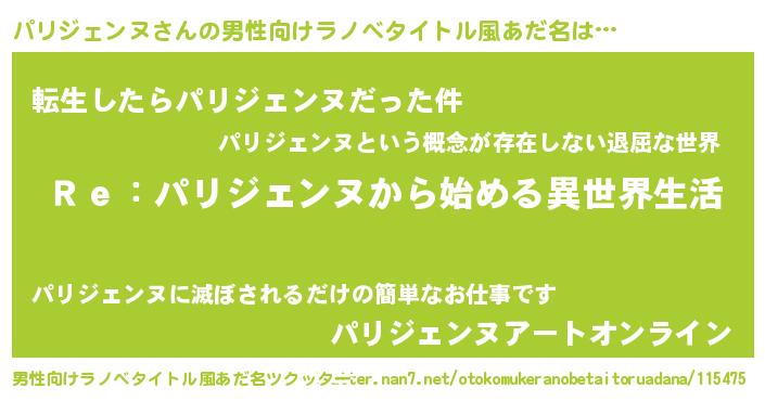 | ヒーロー風カッコイイあだ名 | 『究極戦士パリジェンヌ』『仮面パリダー』 |