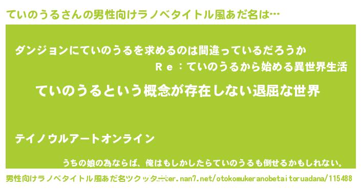 | 意味不明あだ名 | 『永久保存ていのうる』『自称ていのうる』 |