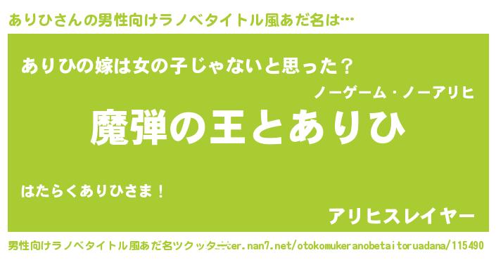 | 女子向けラノベタイトル風あだ名 | 『ありひが死なない童話 林檎のありひの診療簿』 |